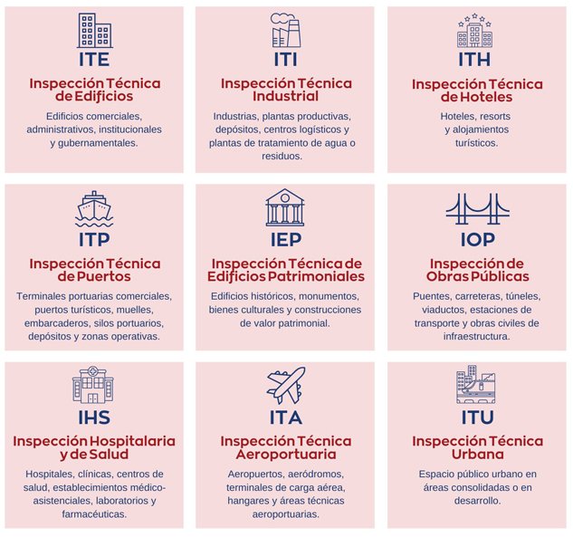 Ofrecemos servicios de inspección técnica profesional especializada en los sectores de construcción, energía, minería, puertos, agroindustria, alimenticia, servicios públicos y otros ámbitos industriales, incluyendo el sector de energías renovables, con especial foco en proyectos de energía eólica y solar.